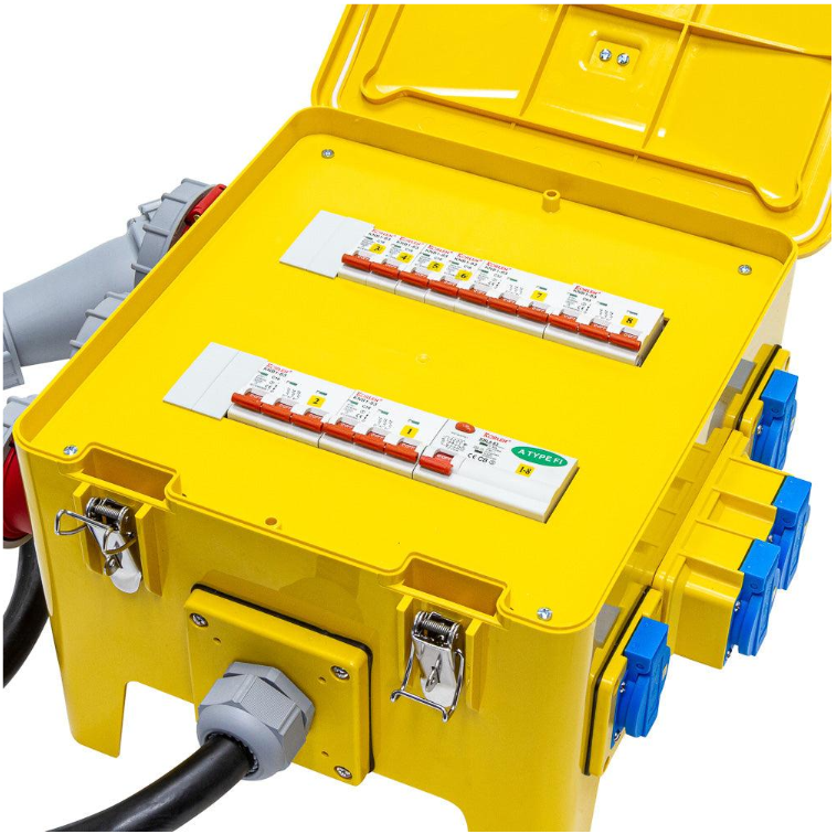 Miete Stromverteiler CEE63 Stromkasten. Mit CEE63 Eingang und CEE63 Ausgang zur weiteren Verteilung.